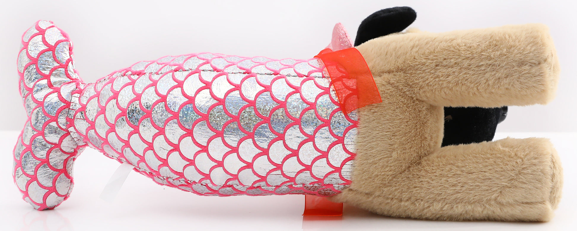 - IDEAL USE FOR STUFFED Pug Dog Mermaid PLUSH ANIMAL TOY - The plush Pug Dog will make a great addition to a kid's plush collection while couples can express their love by surprising their better half with a unique plush. Stuffed animals help develop a child's social skills, speech & creativity when enjoying imaginative playtime with their family. The stuffed Pug Dog plush will be your little one's huggable plush doll best friend when playing, traveling, & learning.