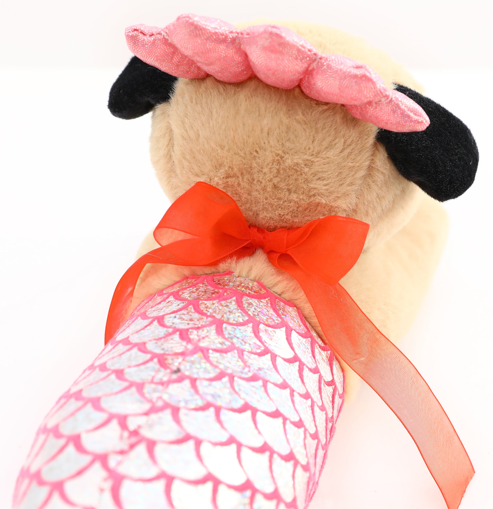 - THE STUFFED ANIMAL Pug Dog COMES WITH Mermaid COSTUME DESIGN YOU WILL LOVE Have an exciting imaginary play with your little one & the Mermaid Pug Dog plush toy. Adorable plush Pug Dog in rabbit outfit will surely bring a smile to your loved ones who love Pug Dogs, and fantasy creatures like Devil. A must-have toy for family bonding. Add cute stuffed animals for kids and adults like the super cute & realistic Pug Dog plush to your fairytale-themed rooms & decor.